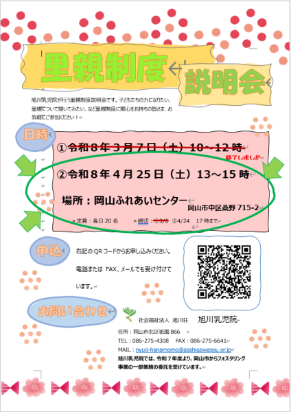 次回の里親制度説明会は4/25(土)13時~となっています。