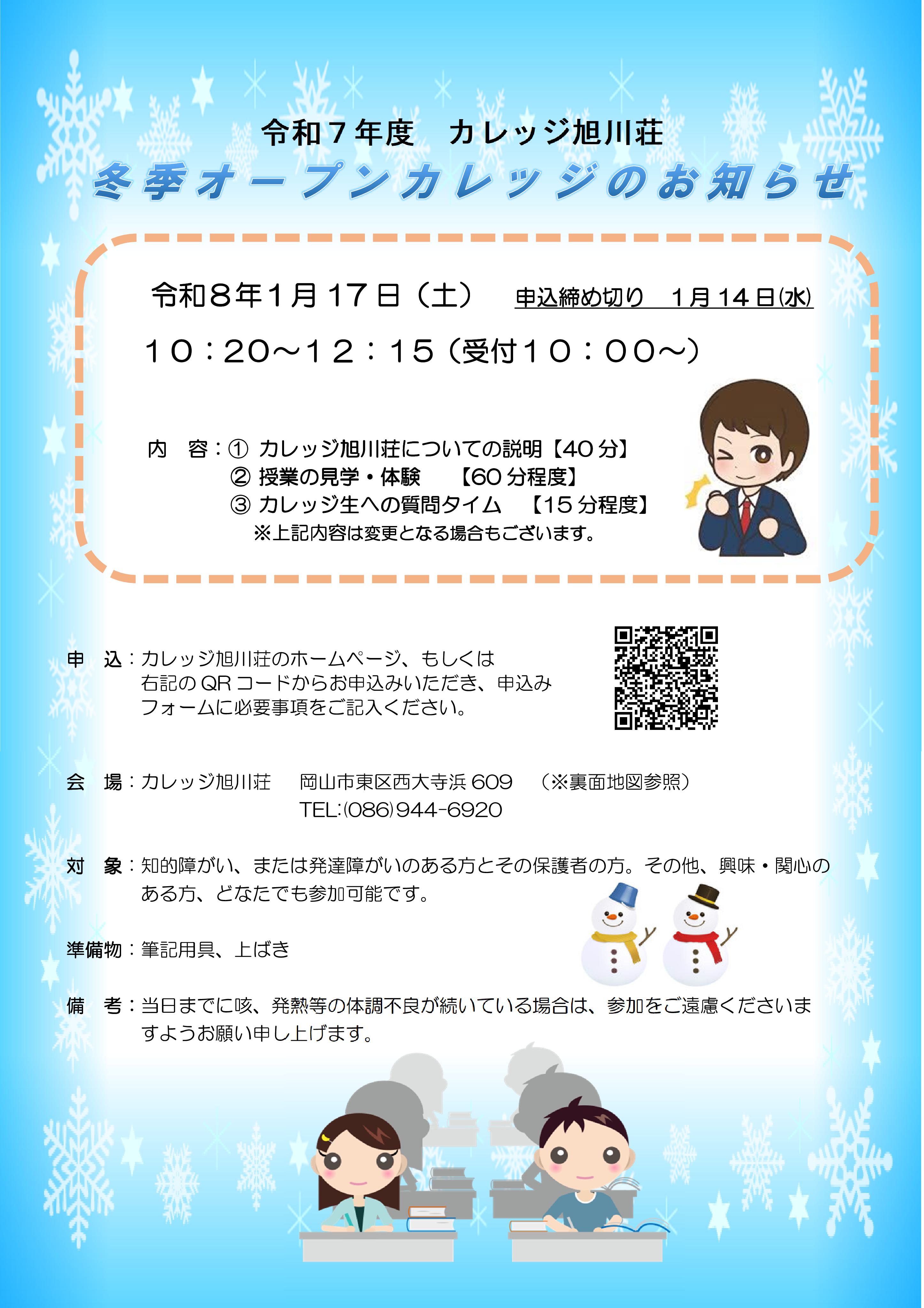 内 容: ①カレッジ旭川荘についての説明 【40分】