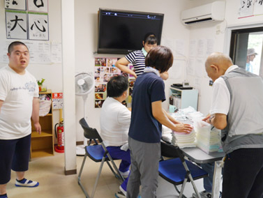 発送作業(広報紙の三つ折り・封入等)や施設清掃(館内清掃やゴミ回収等)をしています。