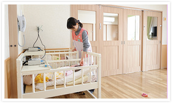 0歳児から2歳児ぐらいまでのこどもたちがいっしょに生活しています。