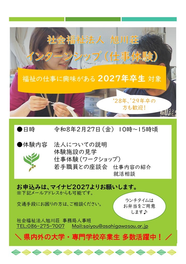 【NEW】インターンシップ(仕事体験)のお知らせ