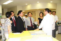 大臣夫人は小児科医でもあり、強い関心を示された。(左端)